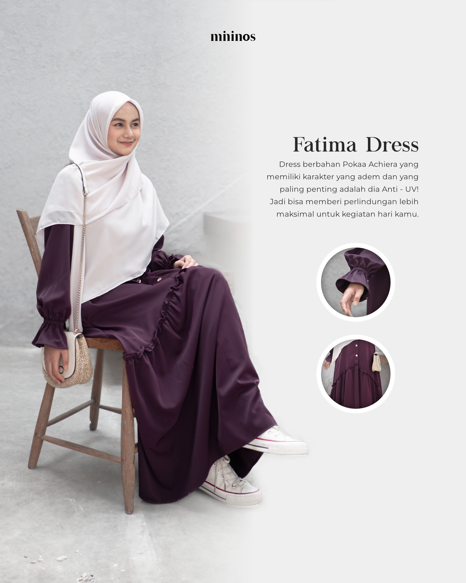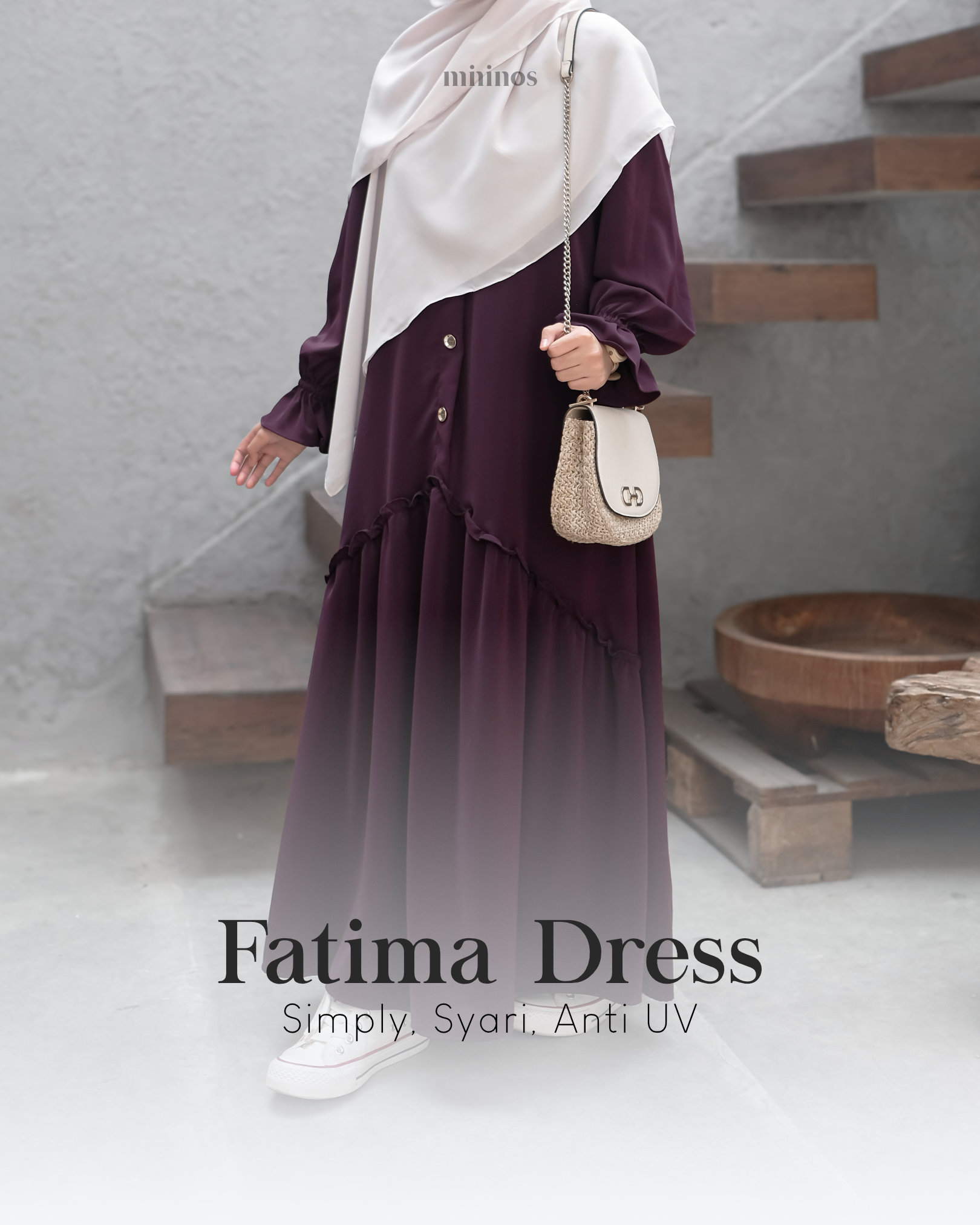 Mininos Fatima Dress Anti UV | Gamis Daily Simpel Elegant Premium Muslimah