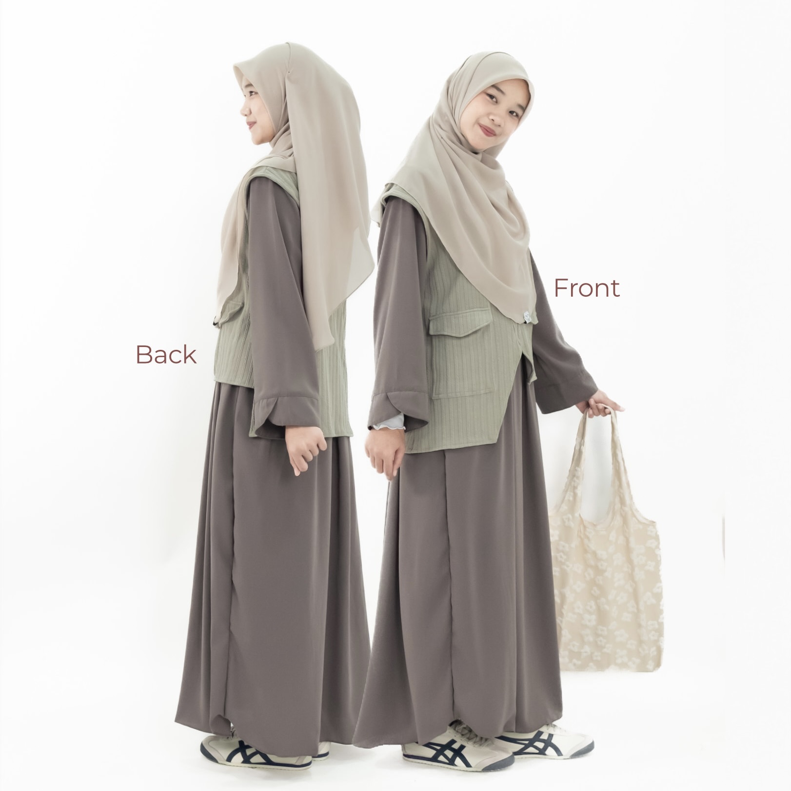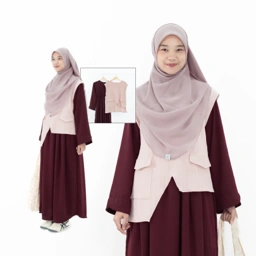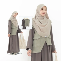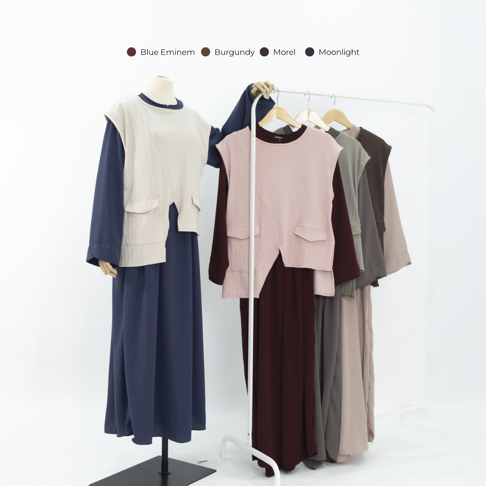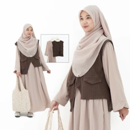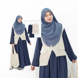 Set Dress dengan tambahan Outer model vest dengan perpaduan dua bahan yang ngasih keunikan tersendiri saat kamu pakai