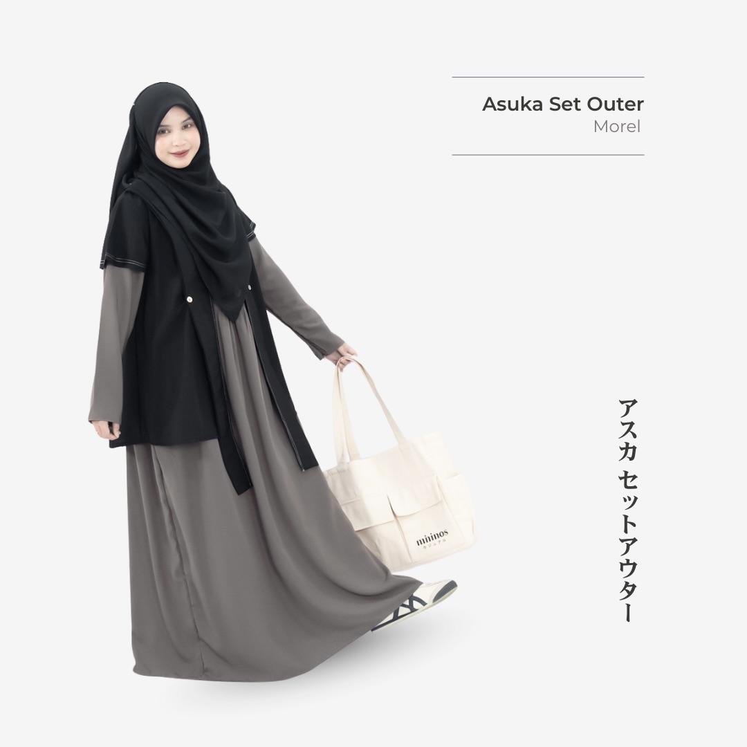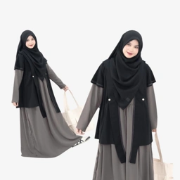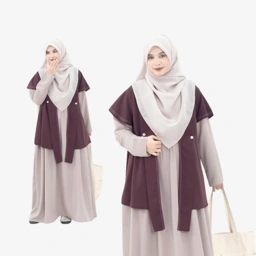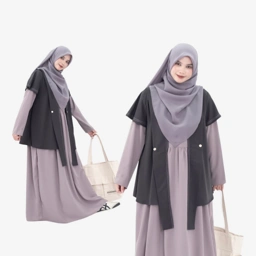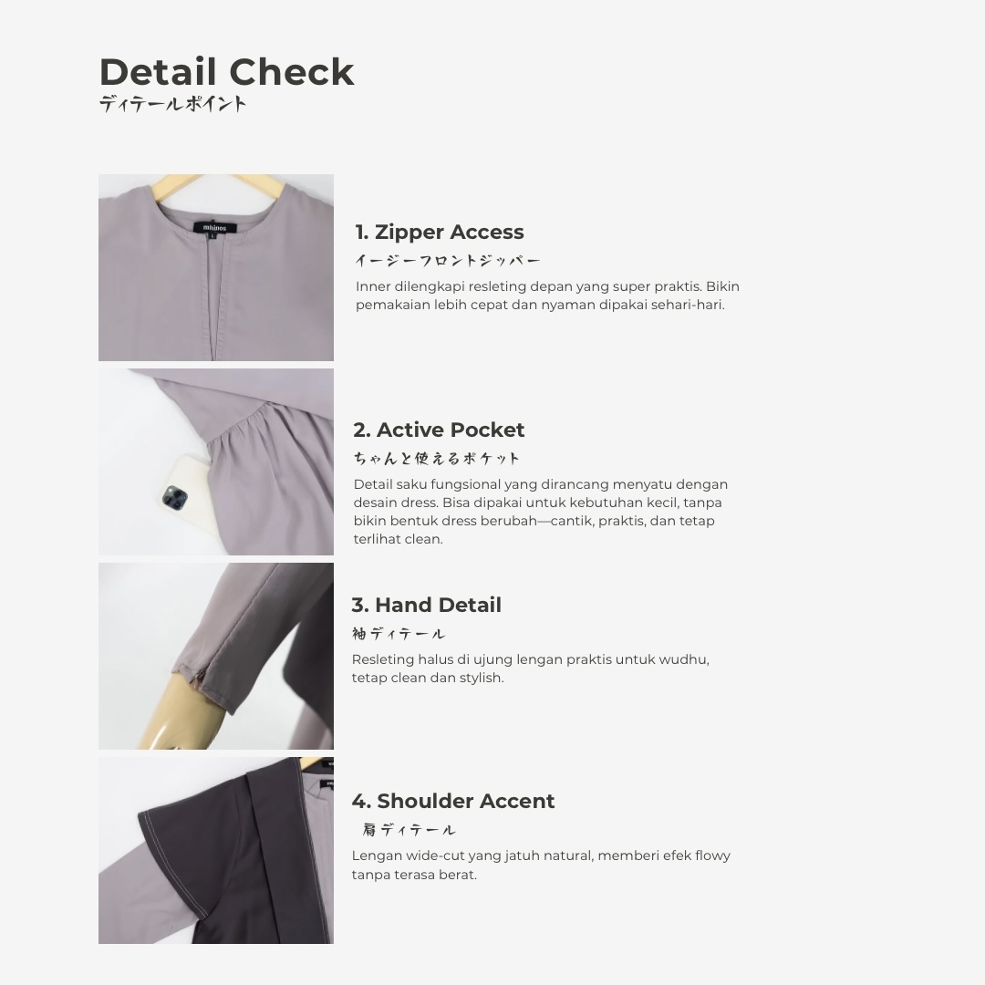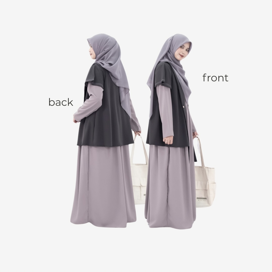 2in1 Resleting Depan Outer Teerpisah Inner Dress Lengan Panjang