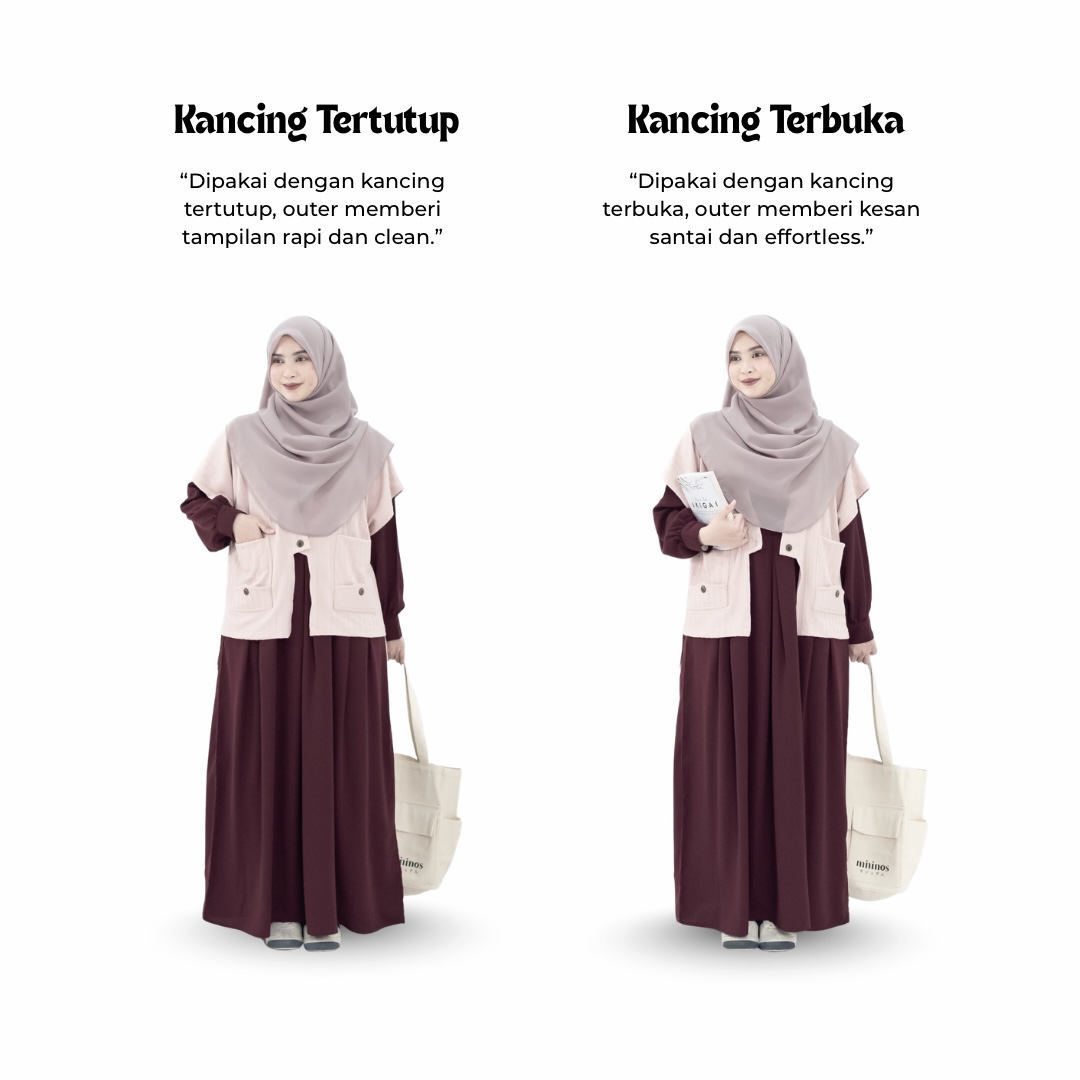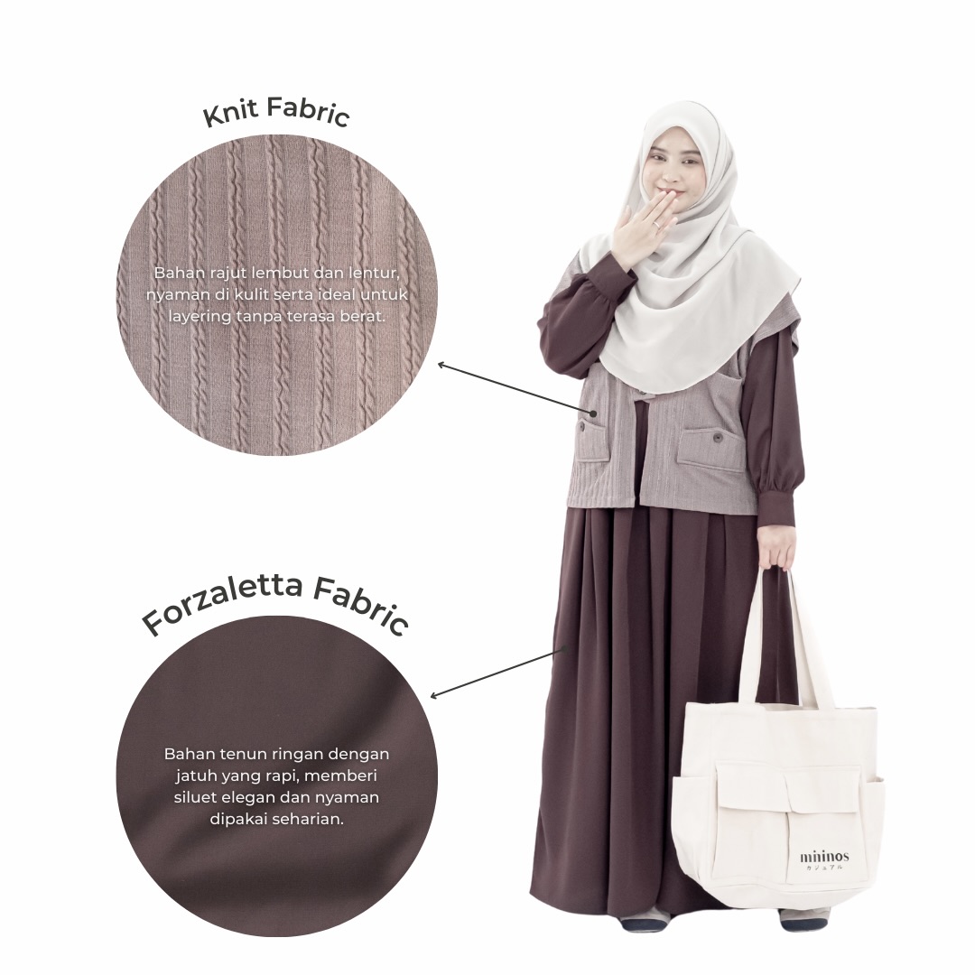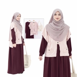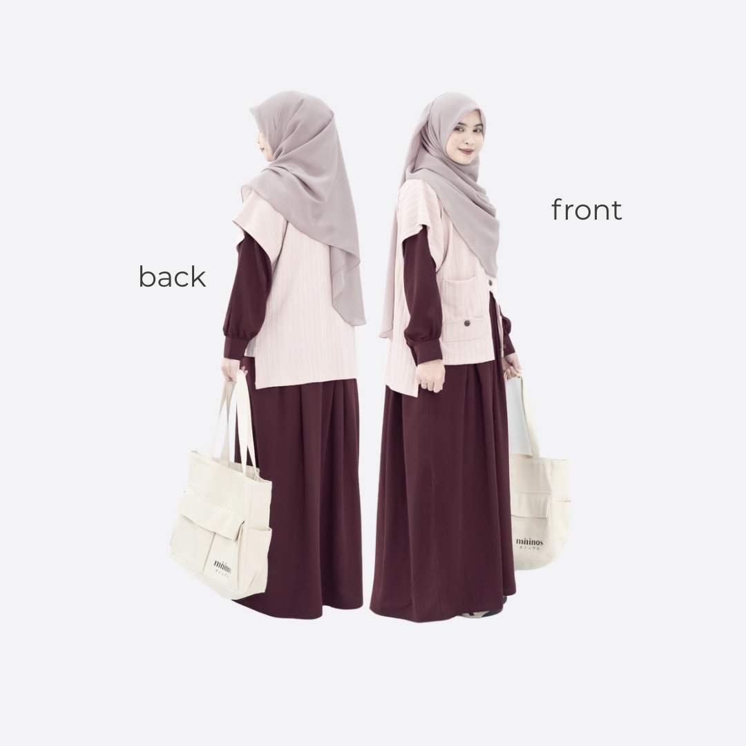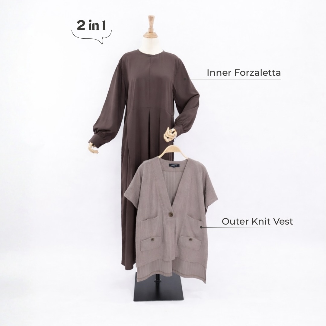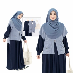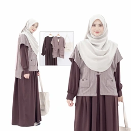 Set Dress dengan tambahan Outer model vest dengan perpaduan dua bahan yang ngasih keunikan tersendiri saat kamu pakai