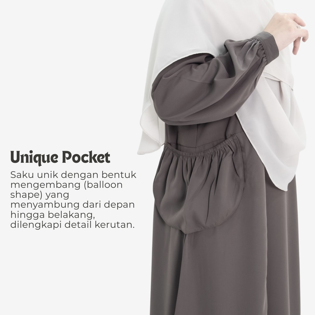 >> Keunggulan Produk • Long Dress/ terusan • Pocket samping unik & fungsional • Busui friendly • Wudhu friendly dengan kancing manset • Look simple, minimalist, tetap stylish • Nyaman untuk aktivitas harian