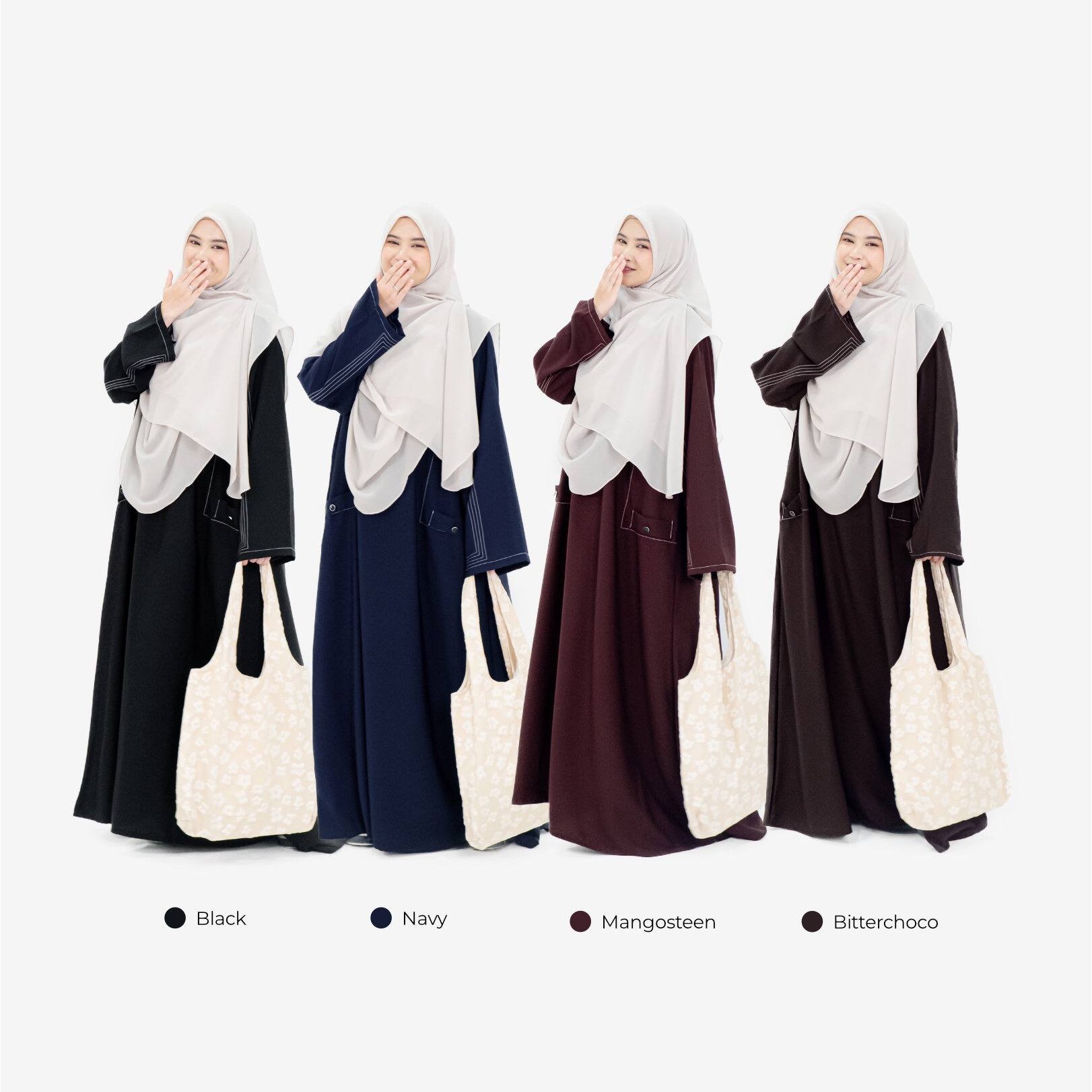 Dress model abaya dengan style sashiko Jepang, bikin tampilan yang super unik, lebih stylish dan juga modern