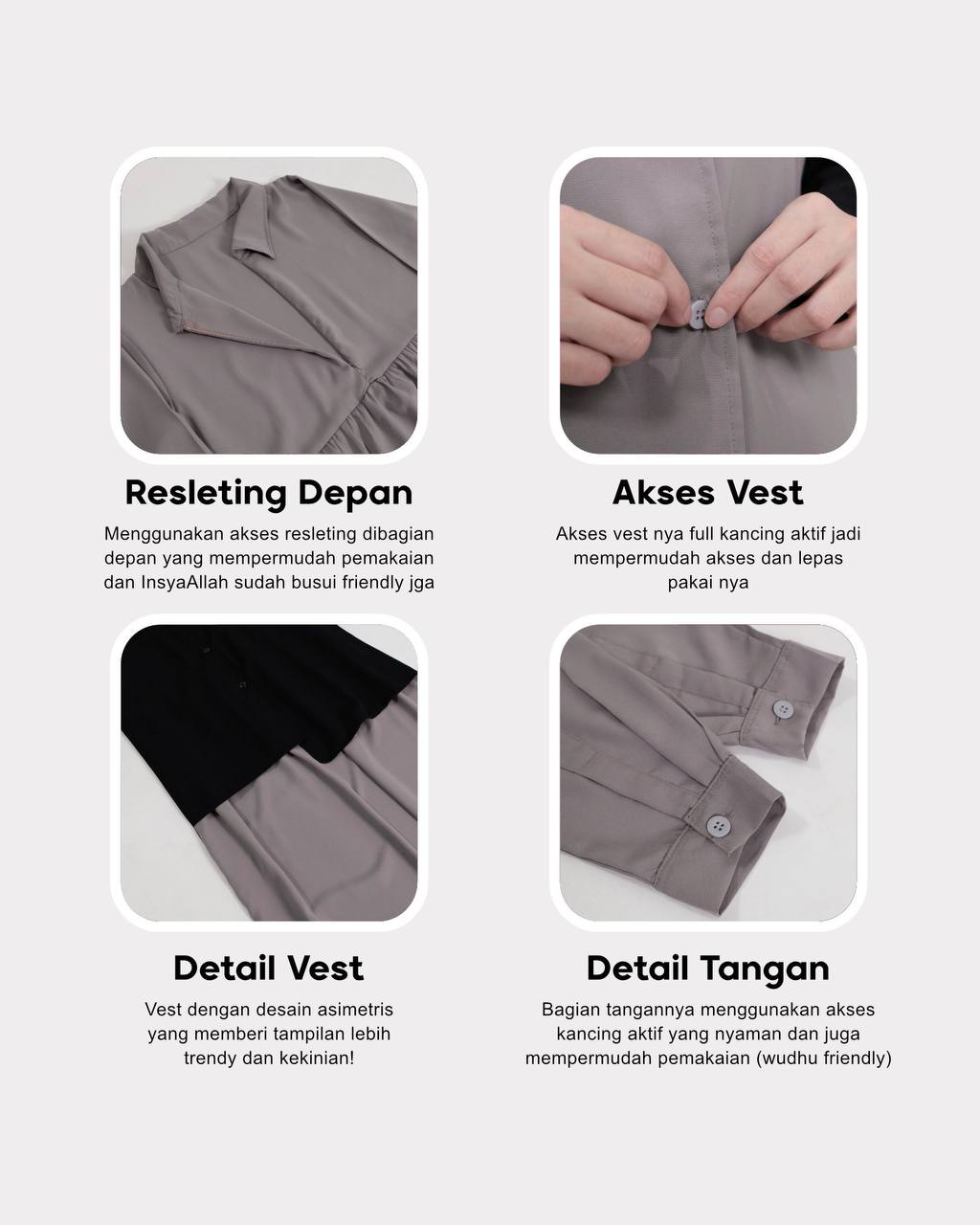 Resleting Depan di bagian inner dress