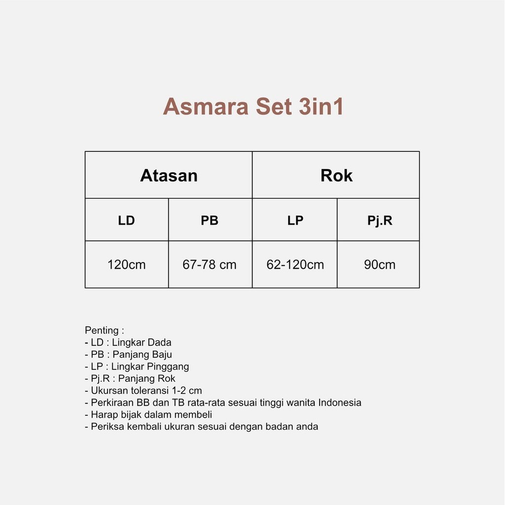 - Asmara set terdiri dari (atasan, Rok , Hijab)