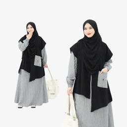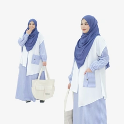 Set dress salur + outer dengan tampilan anggun & modern.