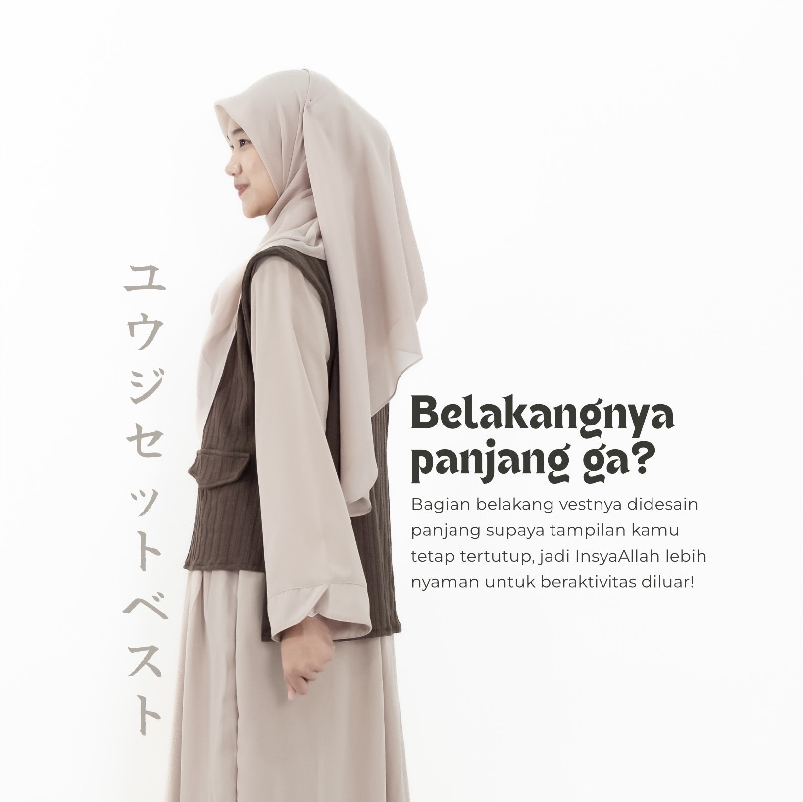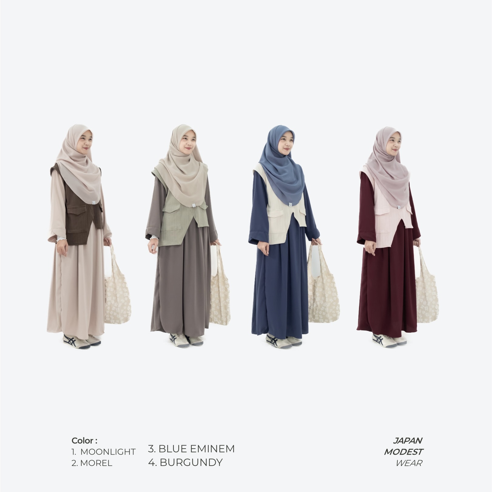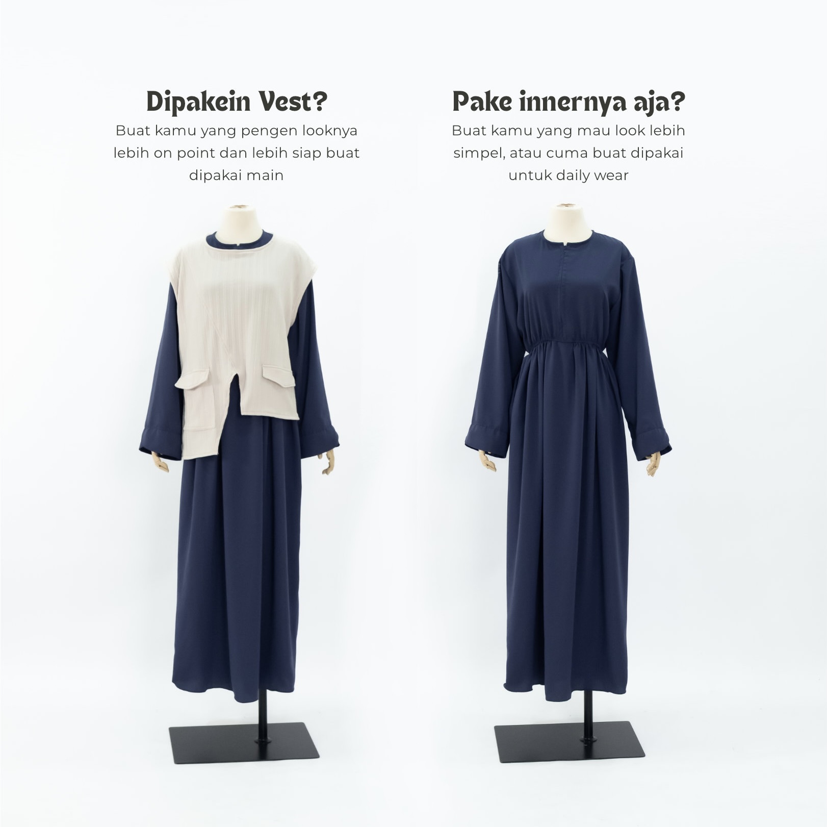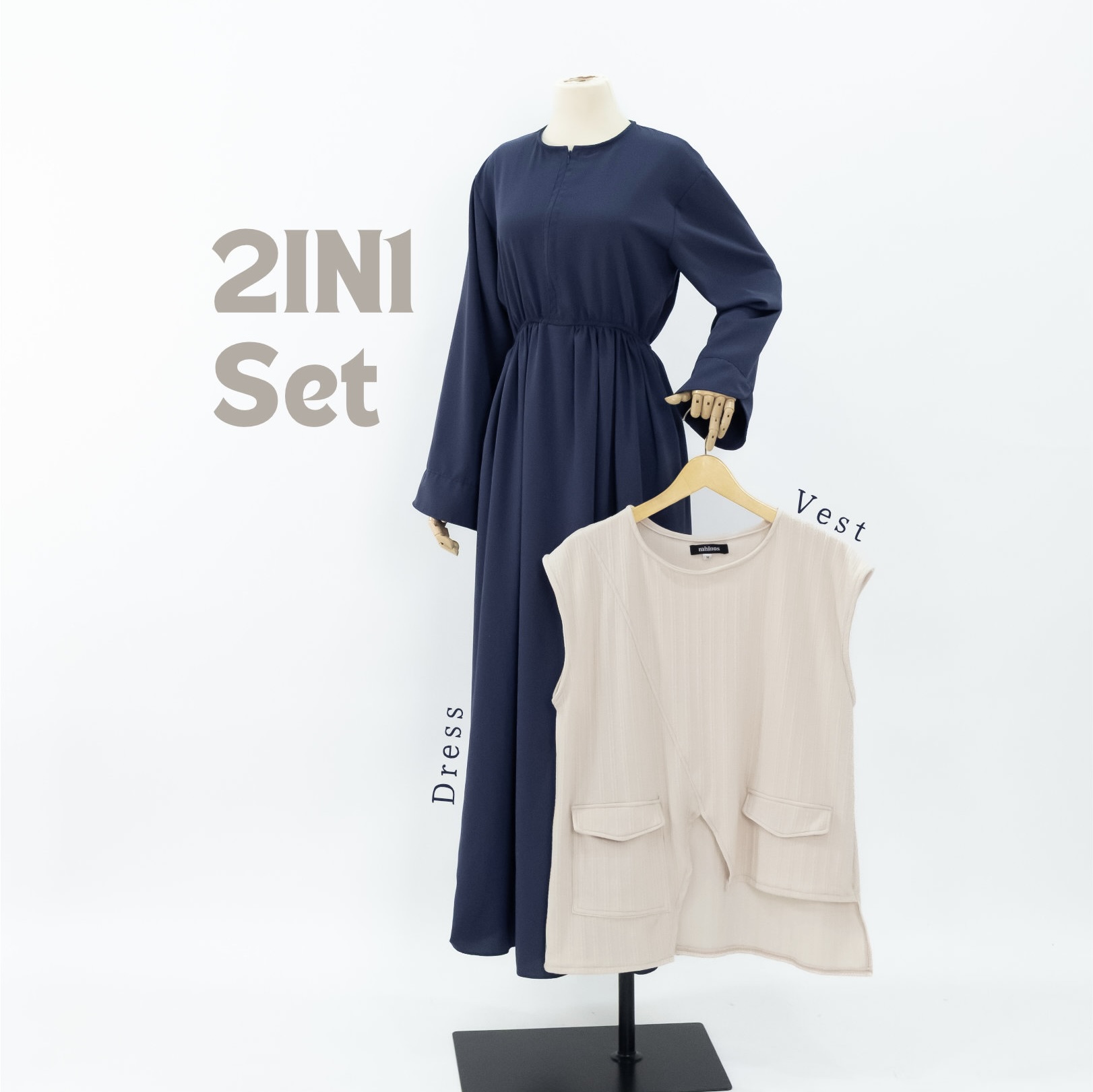 Set Dress dengan tambahan Outer model vest dengan perpaduan dua bahan yang ngasih keunikan tersendiri saat kamu pakai
