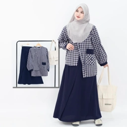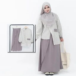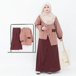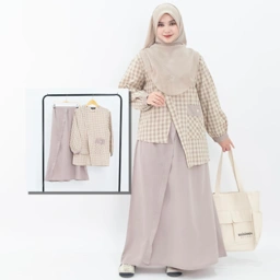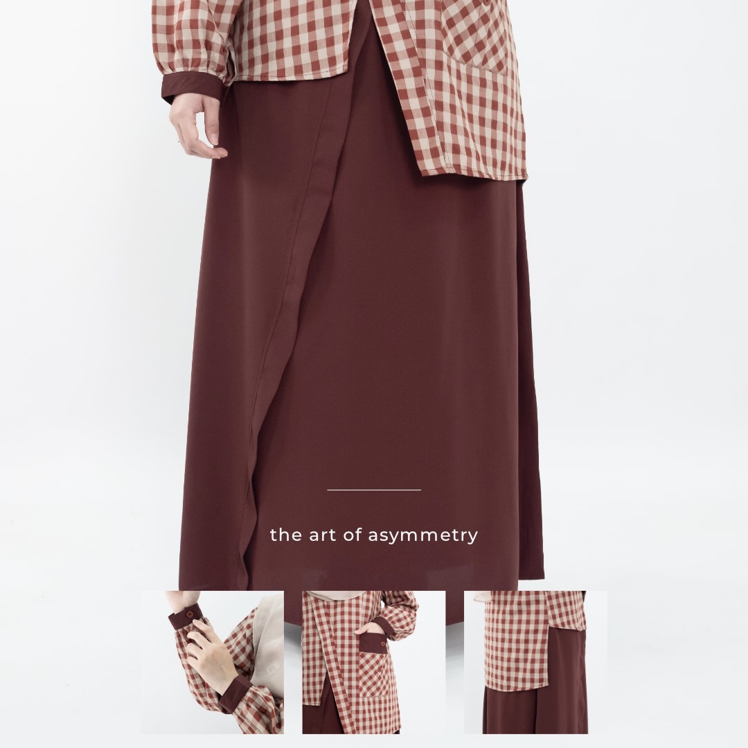 Satu set atasan bawahn supaya kamu ga ribet ribet lagi mix and match, dengan paduan dua bahan ditambah square pattern dengan gaya asimetri ala Jepang bikin tampilan kamu jadi lebih chic, stylish, dan modern.