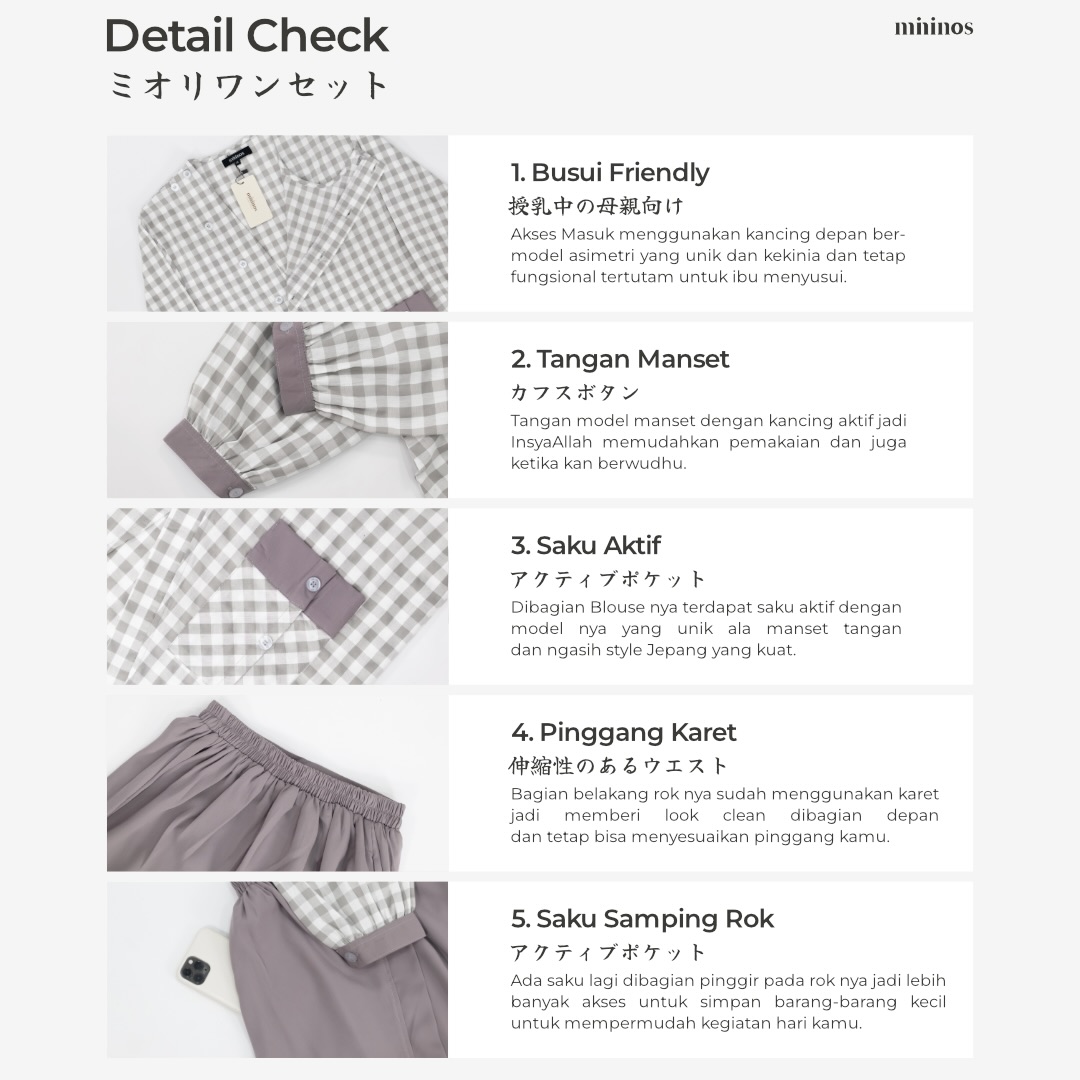 Miori Oneset memberikan gaya casual hingga semi formal, dengan model atasan bawahan yang bikin style outfit kamu keliatan lebih muda!
